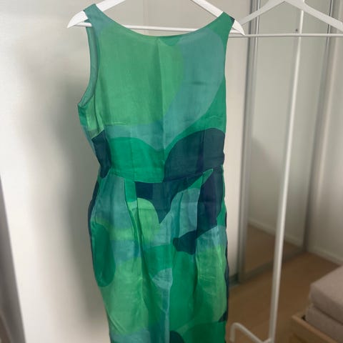 Marimekon tyylikäs mekko, väri tummansininen. Koko 40, mutta aika kapea malli, mielestäni lähempänä kokoa 38. Menee siistinä työvaatteena, vyöllä tai ilman, mekossa ei ole lenkkejä vyölle, vaan vyön voi sitoa haluamalla tavalla.