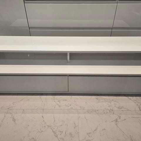 Mustanruskea TV-taso Vekenkalusteelta ostettu. Korkeus jalkojen kanssa 47cm ja ilman jalkoja rungon korkeus 34cm.
