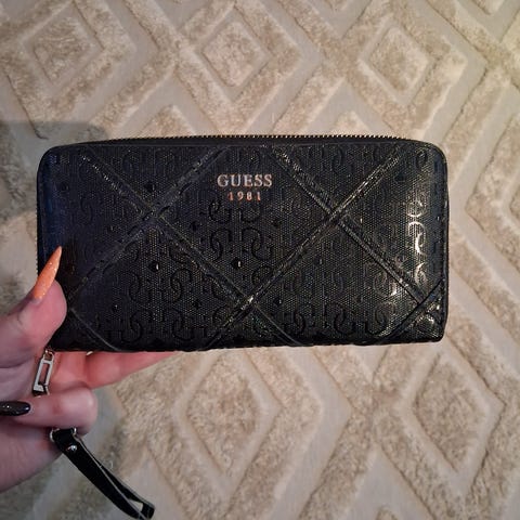Myynnissä Guessin hyvän kuntonen iso lompakko. Löytyy takaa iso vetoketjullinen tasku ja sisältä paljon kortti taskuja.
