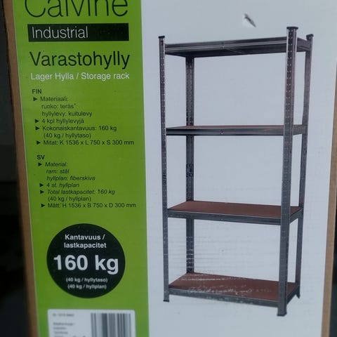 Mahdollista ostaa myös lisäosia tarvittavan mittaiseen hyllykkö kokonaisuuteen. Hyllyt on valmiiksi purettuina. Toimitus lähialueelle neuvoteltavissa.