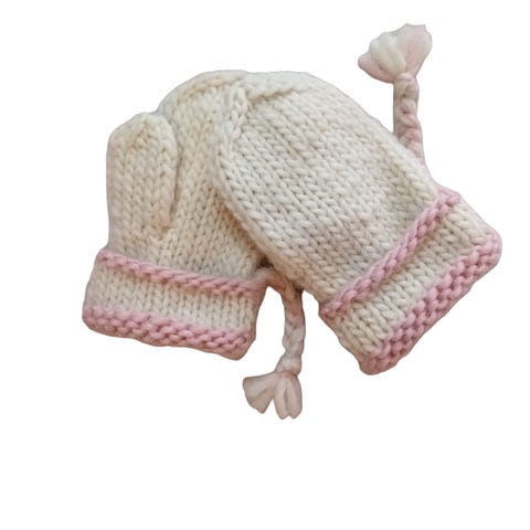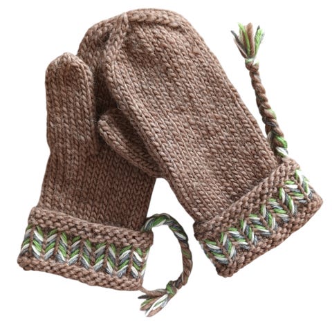 Käsintehdyt villalapaset, joissa vihreä ja valkoinen kuviointi. Perinteinen malli, sopii sekä miehille että naisille.