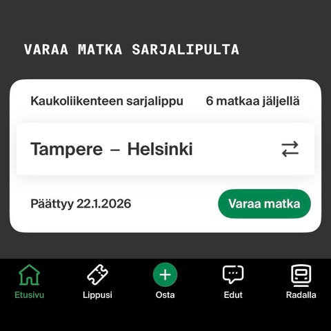 Junalippu kyseiselle välille, lippu sähköinen.