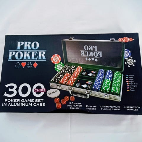 2 korttipakkaa, 5 noppaa ja 200 pelimerkkiä. 30€