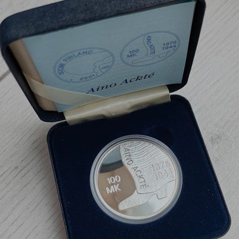 Tämä on Suomen 100 markan hopeinen juhlaraha, joka on lyöty Ateneumin taidemuseon 100-vuotisjuhlan kunniaksi.
