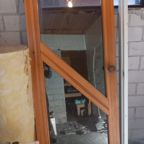 Myydään hyväkuntoinen lasinen saunan ovi.