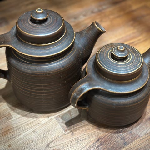 Hakusanat: astiat, kaatimet, kannut, teekaatimet, teekannut, kivitavara, Arabia, retor, vintage, design, Finnish design. Lähetän