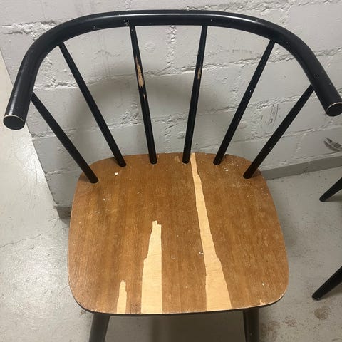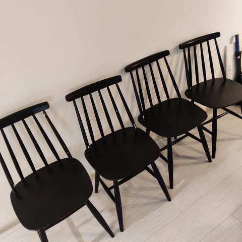 Hyvässä kunnossa maalattu valkoiseksi niin ei ole aivan tehtaan jäljiltä. Muuten tukeva ja hyvä istua.