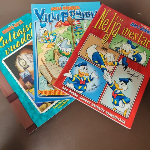 Ankantekijät 2 - Lentävä Skotlantilainen (1p 2003, Romano Scarpa) : Siistissä kunnossa oleva kovakantinen kirja. Painovuosi 2003 (1.painos). Hinta 14.60, toimituskulut 6.90 postin pikkupakettina.