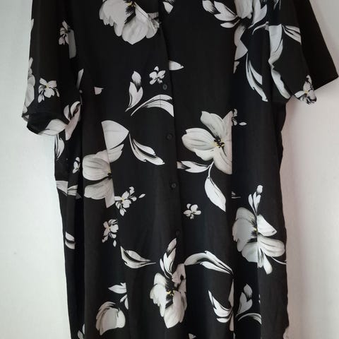 Edessä napitus ja vyötäröllä kiristysnauha, jolla voi solmia muotoja halutessaan tai pitää suoralinjaisempana. Piilotaskut lanteilla.