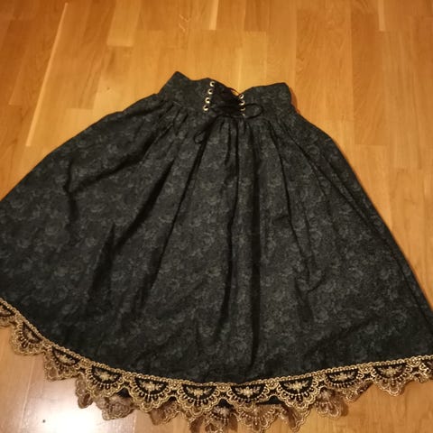 Myydään Juliette et Justine lohikäärme hame kultaisella printillä. Tätä hametta on todella vaikeaa löytää kansainvälisiltäkin markkinoilta, koska se on yli 20-vuotta vanha ja ensimäisestä julkaisusta. Upeasta ja laadukkaasta sametista tehty hame on vähän käytetty ja erinomaisessa kunnossa, sillä sitä on käytetty vain pari kertaa ja säilytetty hyvin (ei kulumaa, tahroja tai hajuja). Mitat (ympärysmitta) pituus: 62cm vy: 60cm . Voit kysyä lisää tietoja ja myös nouto onnistuu Tampereelta.