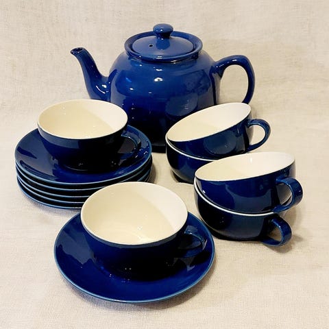 Iso-Pahkalan keraaminen teeastiasto. Kunto uutta vastaava. Kupit ja tasselit 4kpl, pullavati ja maljakko.