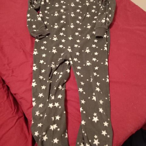 Ciraf fleecehaalari, koko 122 cm. Haalari on vaaleanpunainen ja siinä on valkoisia pilkkuja. Edessä vetoketju, hupussa kasvot. Haalari on ehjä ja siisti, hihansuissa pesunyppyä.