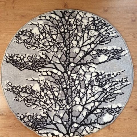 Myydään erittäin siistissä kunnossa oleva Vallilan klassinen Kelohonka-matto. Matto on pyöreä ja siinä on upea, tunnelmallinen puukuviointi harmaan ja mustan sävyissä.