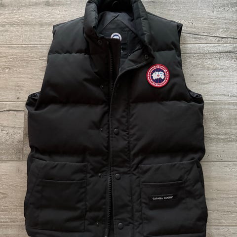 Canada Goose Liivi mustassa värissä, koko S. Valmistettu polyesteristä. Miehille suunniteltu ulkoiluliivi.
