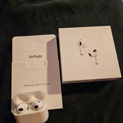 Myydään Apple AirPods 3 RG GE langattomat kuulokkeet valkoisena. Käytetty vähän. Mukana latauskotelo, paketissa ei ole latauskaapelia. Sopii langattomaan äänenkuunteluun mobiililaitteiden kanssa. Ostettu 23.05.2025. Maksu Mobile pay/käteinen. Ensimmäiselle hakijalle.