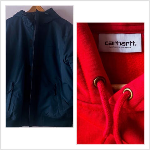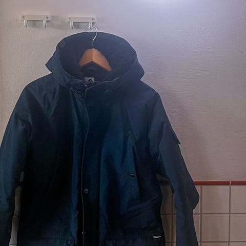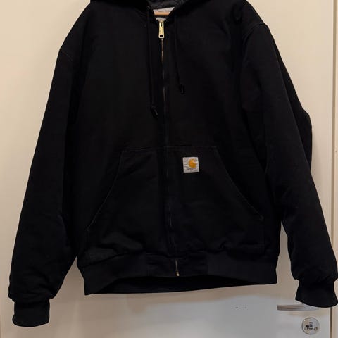 Tummansininen Carhartt Kodiak Blouson toppatakki. Lämmin ja tuulenpitävä. Alareunassa ja hihansuissa resorit. Tuulilistassa tarranauhakiinnitys. Vetoketjulliset sivutaskut. Hupussa kiristysnyöri. Erinomaisessa kunnossa.