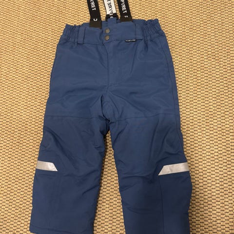Siniset Polarn.O.Pyretin henkselitoppahousut, koko98. Muuten hyväkuntoiset ja ehjät, mutta on ollut lahkeet liian pitkät ja takanta lahkeista rispaantuneet. Tästä kuva. Ei näy käytössä.