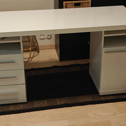 Myydään työpöytä kahdella laatikolla ja yhdellä pitkittäisellä laatikolla. Koko 143 x 58cm. Käytönjälkiän löytyy hieman, mutta on siisti.
