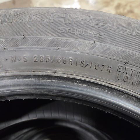 Myydään tälläiset käytetyt 225/55 R18 Nokian Hakkapeliitta R3 kitkarenkaat. Renkaissa on n. 6 mm pintaa ja ne on valmistettu vuonna 2018