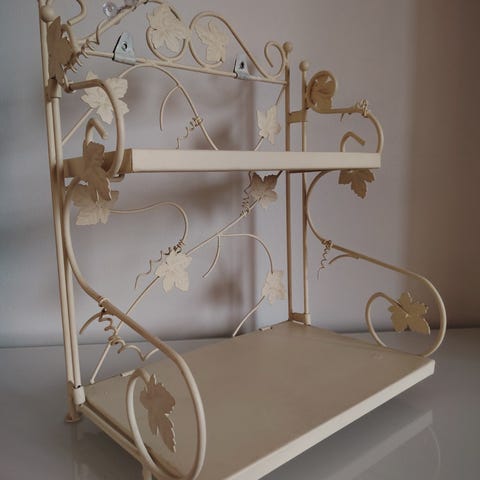 Neljä metallista (kylpyhuoneen) hyllyä.