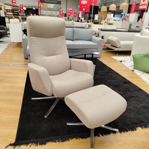Kuparin värinen Belluksen nojatuoli. Tuolin kunto on uudenveroinen.