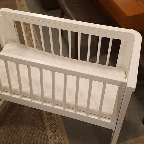 Ikean pinnasänky kahdella alalaatikolla ja irrotettavalla etuseinällä. Tähän voi ostaa myös ikean lisälaidan jos irrottaa etuseinä lapsen kasvaessa. Sängyn saa myös korkeammalle vauvan ollessa pieni. Käyttökulumaa, siitä kuvat.
