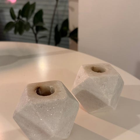Myydään kauniit ja ajattomat Granitista ostetut kynttilänjalat.