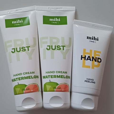2x käsivoiteet, käsienpesuaine ja käsikuorinta