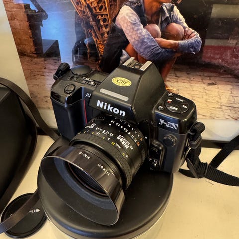 Nikon F75 filmikamera + 28-80mm objektiivi. Nikonin viimeisin filmikamera johon on pakattu kompaktiin kokoon kaikki se osaaminen jota heillä oli. Todella siistissä kunnossa.
