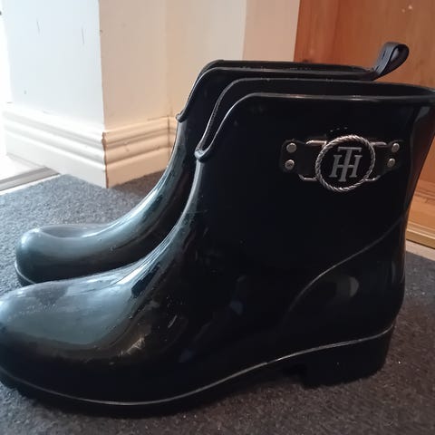 Tommy Hilfigerin kumisaappaat, nilkkurimallia. Muutoin hyvässä kunnossa, reunassa kulumaa (kts. kuvat).