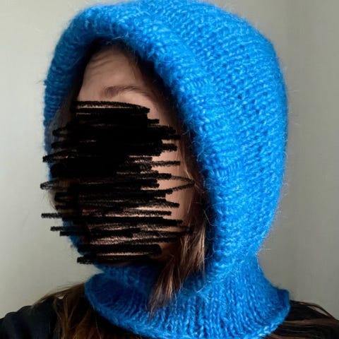 Itseneulomani balaclava huppu. Lanka on DROPSin baby alpakka x merinovilla, joka ei kutita.