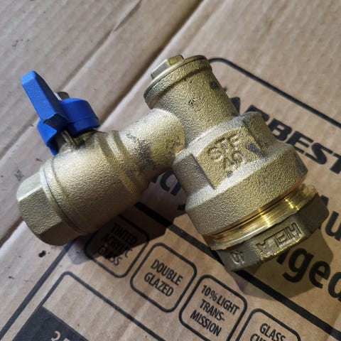 Hela 313 vesimittariventtiili, jossa on kierreliitin.