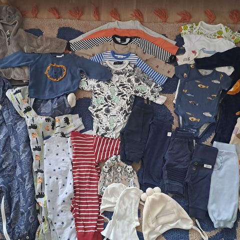 Paljon vaatteita pikkuhinnalla. Osassa voi olla joku tahra/pieni reikä, huomioitu hinnassa. Tästä edullisesti iso kasa vaatteita. Bodeja, housuja, sukkiksia, haalareita, yöpukuja. Kaiko body 62 2 kpl, pörröhaalari 62, vk haalari 74.