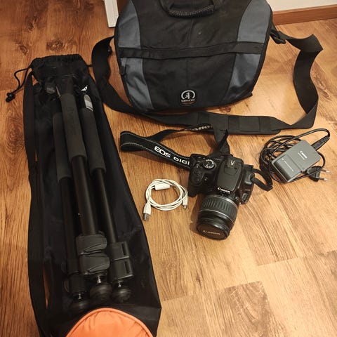 Canon EOS 400D järjestelmäkamera ja 2 objektiivia