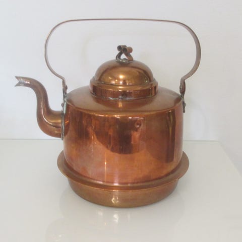 Kromattu kuparinen vanha kahvipannu.