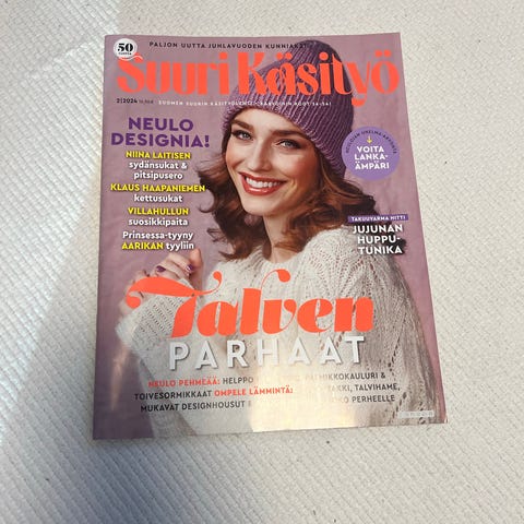 Myynnissä kuvan Suuri Käsityölehti juuri ilmestynyt 1/2026,siis lukematon,ei merkintöjä,sisältää vain tilaajille Niina Laitisen sukkamallin ym.uutta neuletta ja ompelua.kaavat paikoillaan.