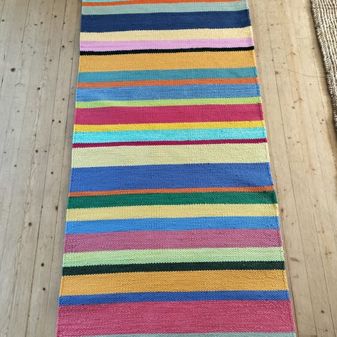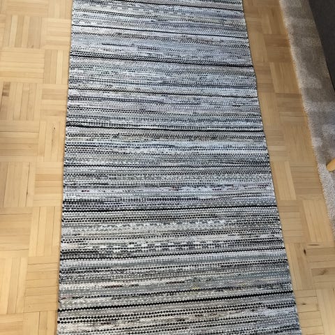 Erittäin hyvin kudottuja, napakoita räsymattoja. 15 -säikeinen vaalea loimilanka. Leveys 82. Kuvien 1 ja 2 maton pituus 187 ja kuvien 3 ja 4 maton pituus 201. Lyhyempi 59 €, pitempi 65 €. Yhteishinta 100 €. Postitus onnistuu.