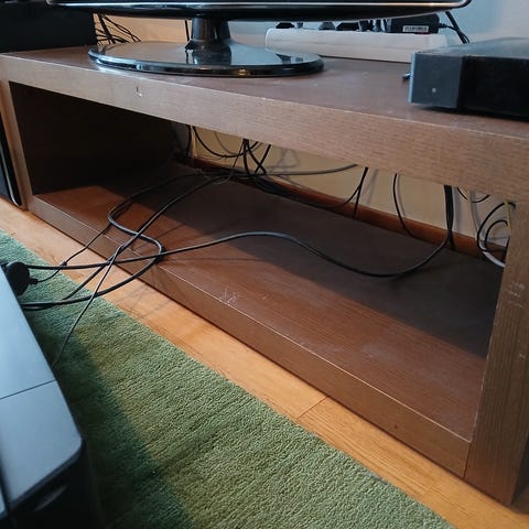 Myydään ok-kuntoinen tv-taso. Väriltään vaaleansininen. Leveys on noin 130 cm. Kaksi hyllyä, ja eteen tulevat säleiköt. Toinen säleikkö pysyy kiinni, toisen saa mahdollisesti kiinnitettyä.