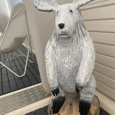 Pahkasian kallo, joka on kiinnitetty puiseen seinälautaan. Kallo on luuta ja esittää sian pään ja kulmahampaat. Koriste soveltuu seinälle ripustettavaksi.