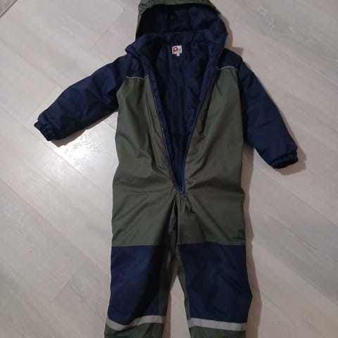 Siisti talvihaalari koossa 120 lukuunottamatta lahkeita, ks. Kuva. Ei häirinnyt meillä käyttöä. Lumilukko ehjä.