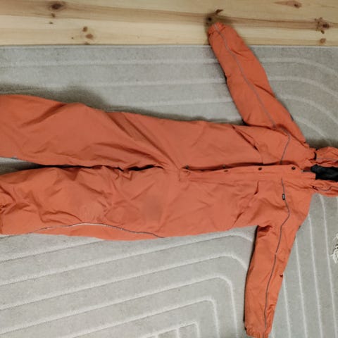 Erittäin hyväkuntoinen haalari. Muhkea edelleen. Hyviä ominaisuuksia: lumilukot lahkeissa, pitkät hihansuut, hihatasku hissikortille, irrotettava huppu.