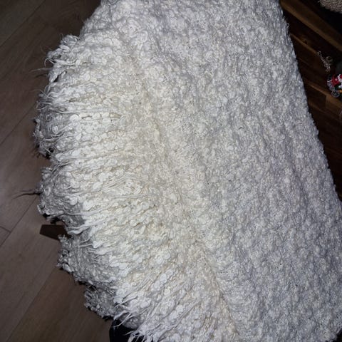 Punainen viltti/torkkupeitto, materiaali 100% villaa. Koko 127 x 99 cm. Käyttämätön.