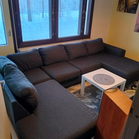 Hyväkuntoinen, täysin ehjä, noin 3 vuotta käytössä ollut laadukas kotimainen (Pohjanmaan) divaanisohva. Tammi-jalat. Vetoketjulliset, pestävät tyynynpäälliset.