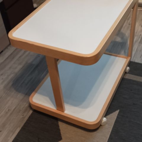Myymälässä mallina ollut italialainen tarjoiluvaunu. Kannessa pieniä käytön jälkiä sekä ruskea läikkä. Kannen mitat 77x52 cm ja kannen korkeus 68 cm.