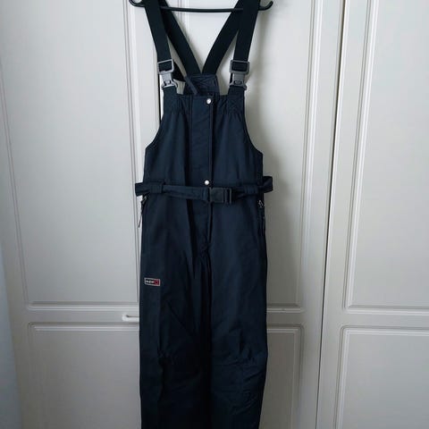 Myydään kuvan mukaiset laskettelu/ toppahousut lumilukoilla. Henkselit hävinneet matkan varrella.