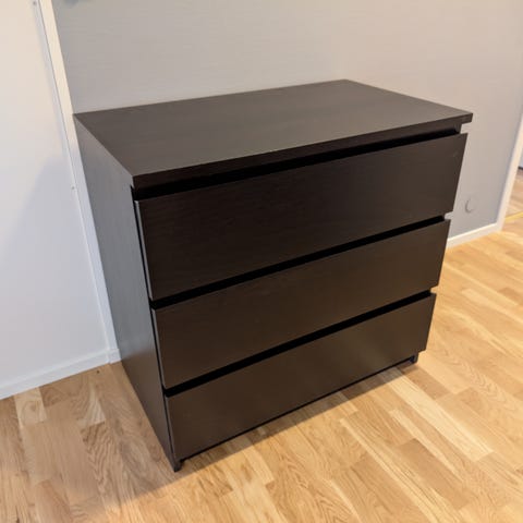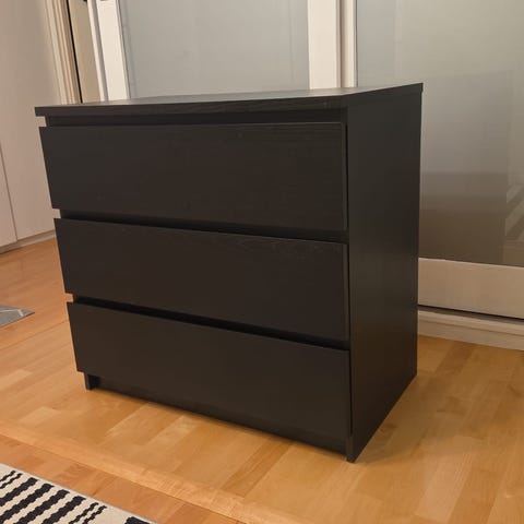 Myydään 6-laatikoinen Malm-lipasto. Väri mustanruskea (poistunut valikoimasta), koska ei löydä paikkaansa uudessa asunnossa. Lipasto on ehjä ja siisti, mutta käytössä tullut pientä kulumaa ja yksi näkyvä naarmu (ks. kuva). Naarmun saa helposti esim. maalilla piiloon. Vain nouto (nopeat noudot etusijalla). Lipasto on melko painava, eli mielellään oma kantokaveri mukaan. Tarjoa, jos hinta ei miellytä.