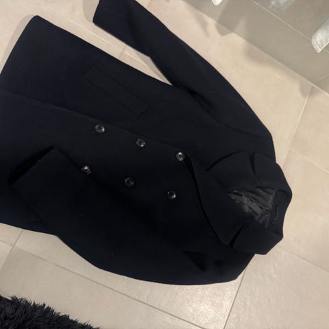 Pari kertaa päällä käynyt villakangastakki. Koko 44.