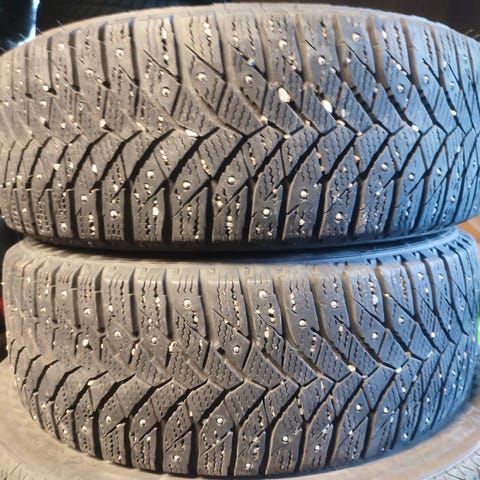 Muutamia nastoja lentänyt moottoritiellä, edulliset renkaat sitä tarvitsevalle! Varastoon lojumaan jäänet, näillä yhden/kahden talven ajaa hyvin vielä!