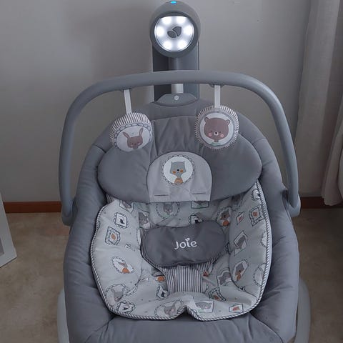 Joie sähkökäyttöinen sitteri, 2 in 1, monipuolinen keinuva sitteri useilla ominaisuuksilla.