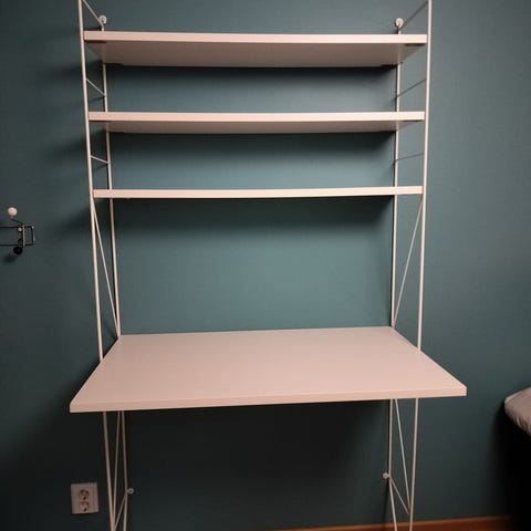 Todella siisti studiopöytä vedettävällä tasolla, piuhat saa nätisti piiloon ja tilaakin on mukavasti hittien rustaamiseen.